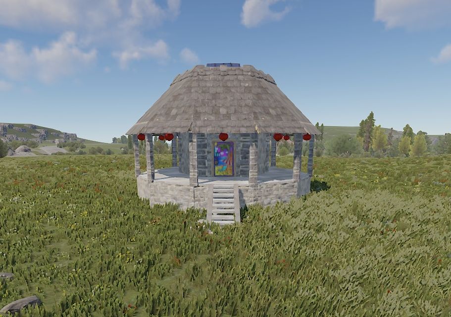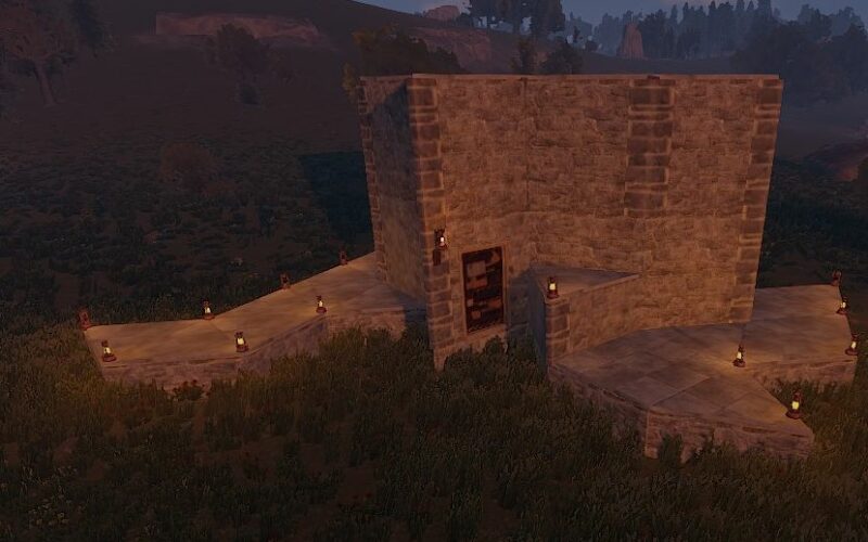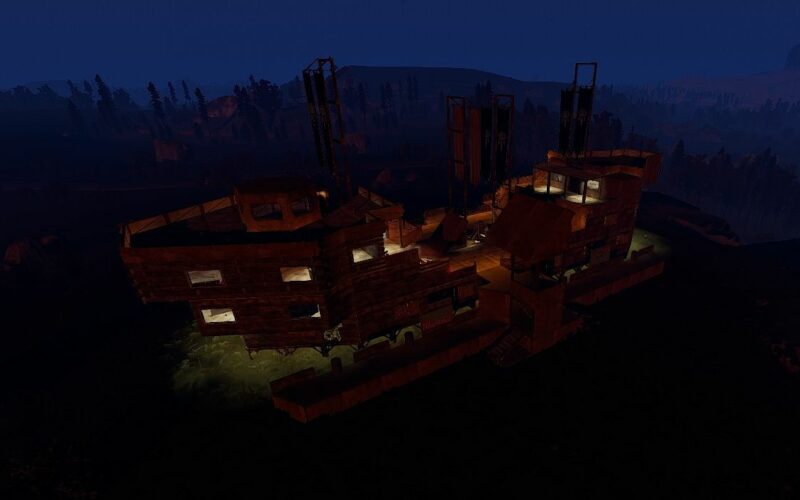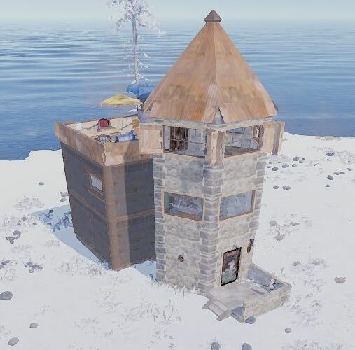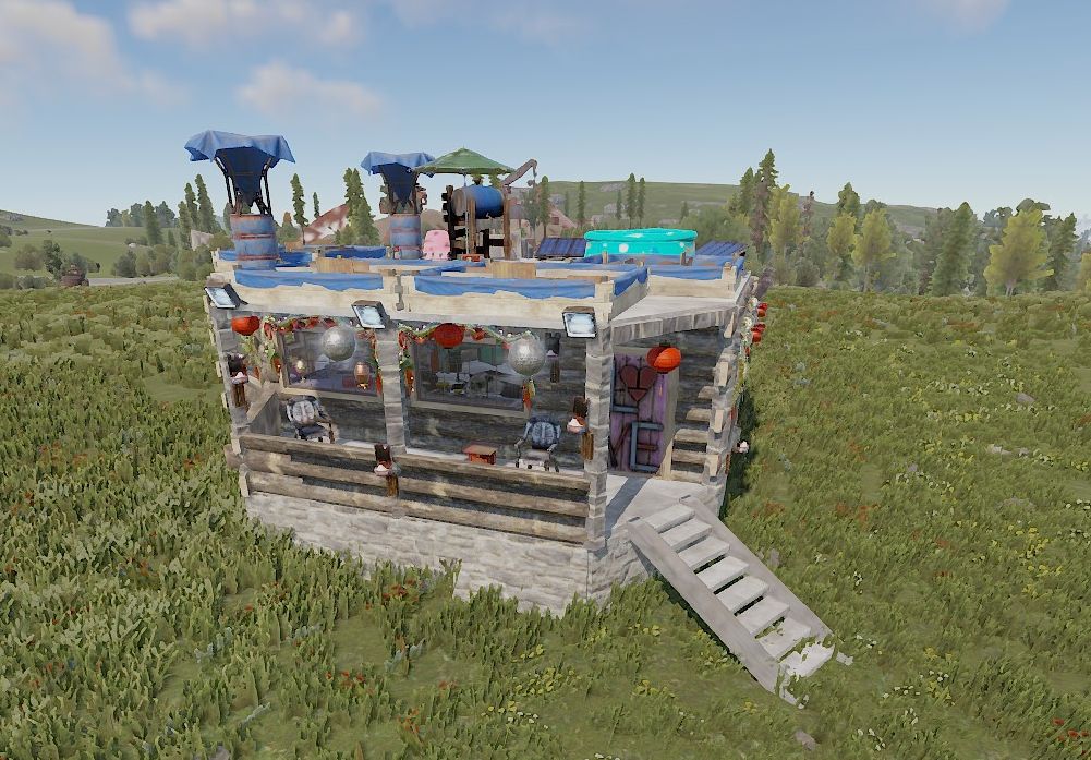 players „agatha“ base from 2023. a small base with a lot of inventory as one big room with a farm on the roof.